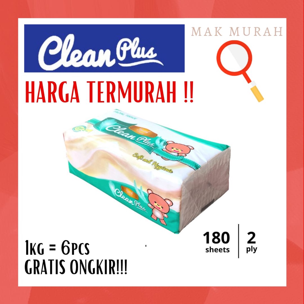 Harga Tisu Wajah Clean Plus 180's / See U / Jolly / Paseo / Plenty - Facial Tissue saat ini masih murah hanya Rp. 5.999,00, kita tidak akan pernah tahu tentang Harga ini di masa depan, juga stok barang ini nanti atau besok hari, bisa saja harganya naik tinggi atau bisa juga stok sudah Habis.