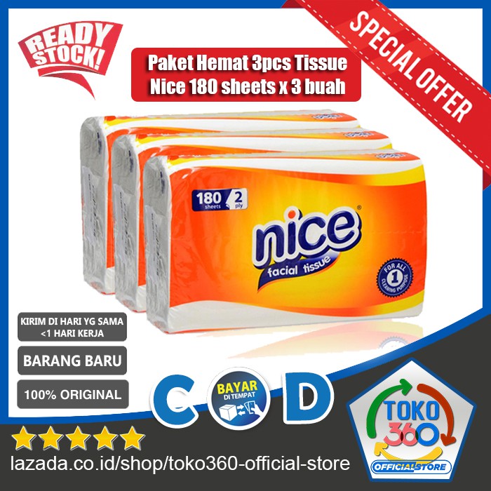Kelebihan - Kelebihan membeli 【TOKO360】【Paket Murah 3pack】 Tissue Facial Nice 180 Sheets 2 Ply Tisu Tisue Tissu Wajah Muka 180s 180 Lembar Paketan 3 pak / 3 pack - Harga Termurah Grosir - Bayar Di Tempat COD - Toko360 di Toko ini